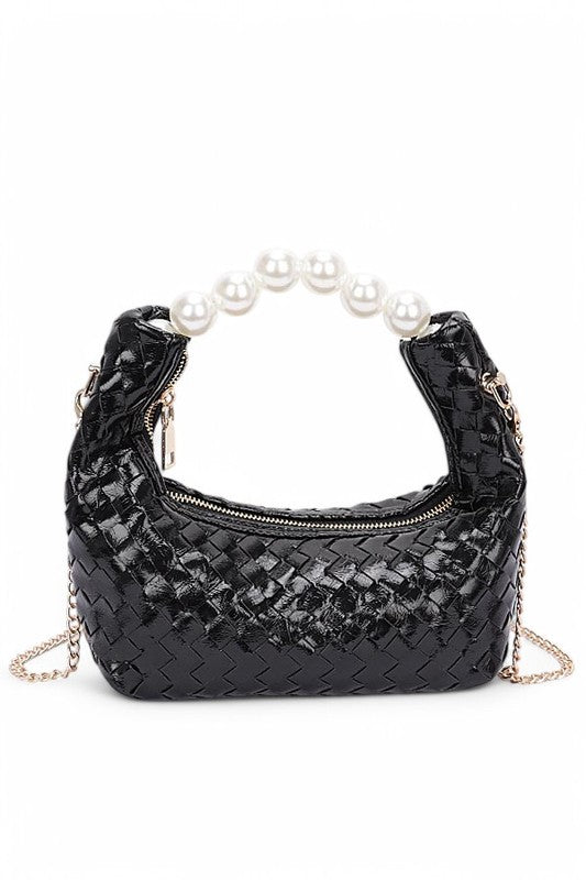 Pearl Handle Metallic Small Convertible Clutch Bag